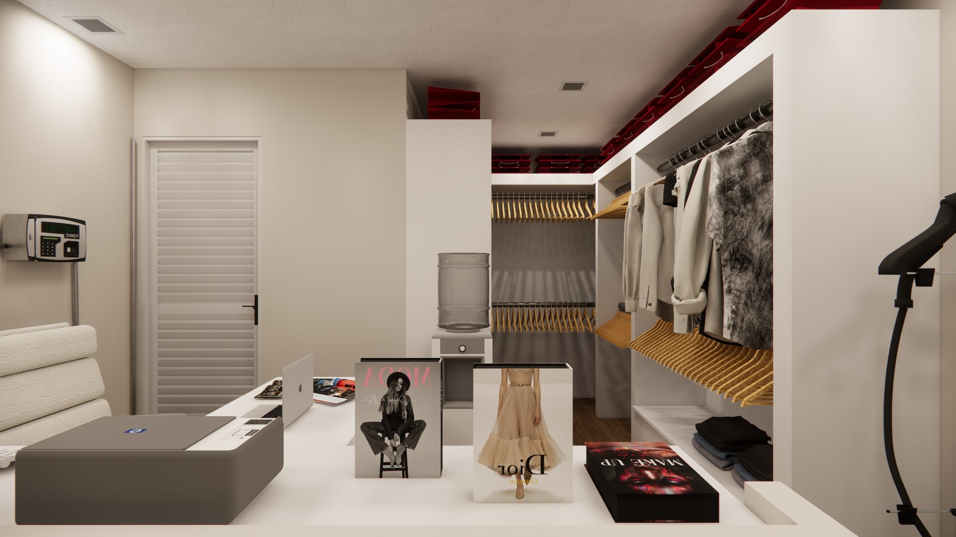 Com isso, fizemos uma consultoria indicando os melhores fluxos, decoração, vitrine, iluminação (que era um ponto a ser melhorado) e layout das peças expostas.