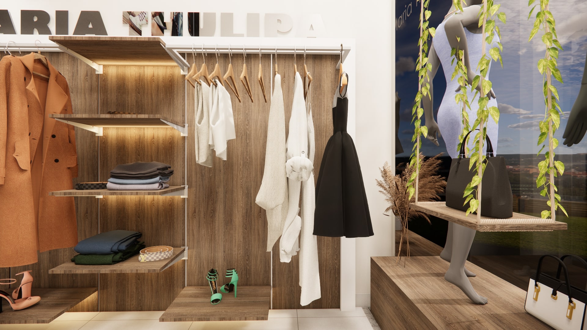 Trouxemos mais fluidez, clareza nos detalhes das peças e uma exposição mais harmônica, usada como pano de fundo da vitrine.